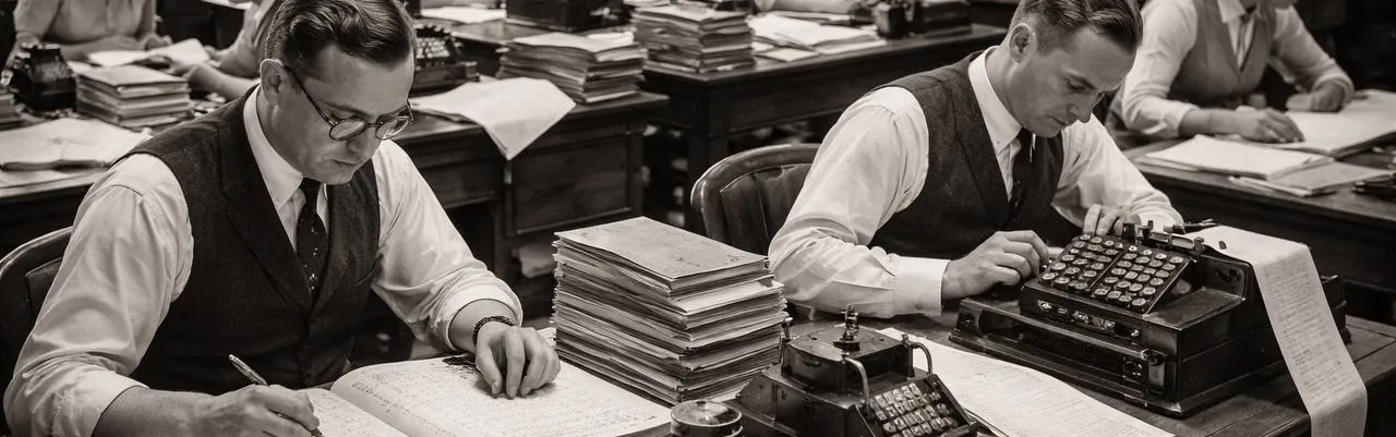 📜 Początek XX wieku: ręczna księgowość